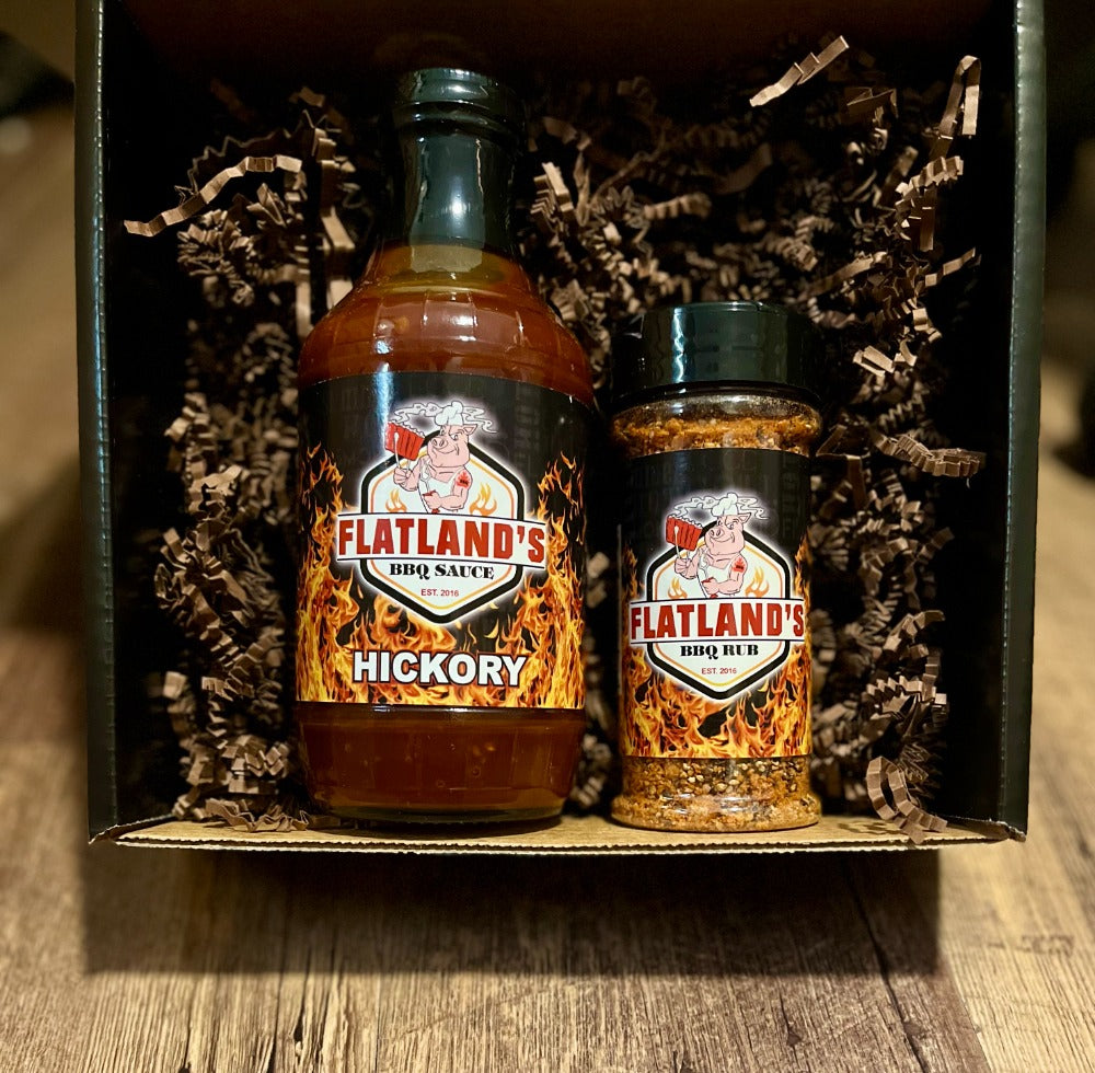 Need a gift idea? Grab the Flatlands BBQ Gift Box set. Comes with 1 bottle of Flatlands BBQ Sauce and 1 bottle of Flatlands BBQ Rub. They are the perfect combination of sweet and heat for every occasion.